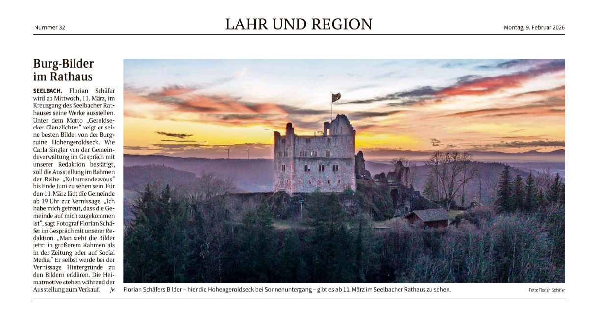 -Ankündigung Vernissage Lahrer Zeitung 09. Februar 2026